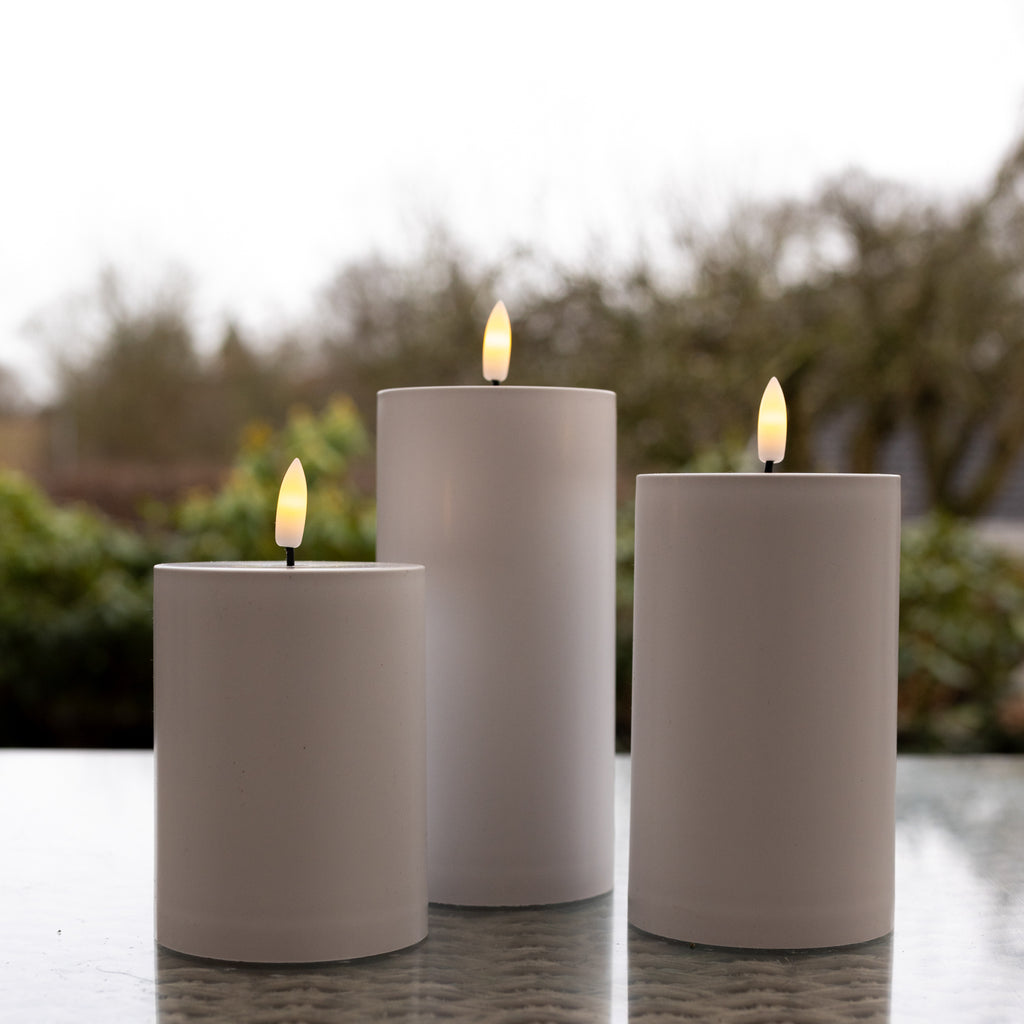 Sia LED pillar candle outdoor rechargeable Ø 7.5 X 10-12.5-15 cm 3 pcs